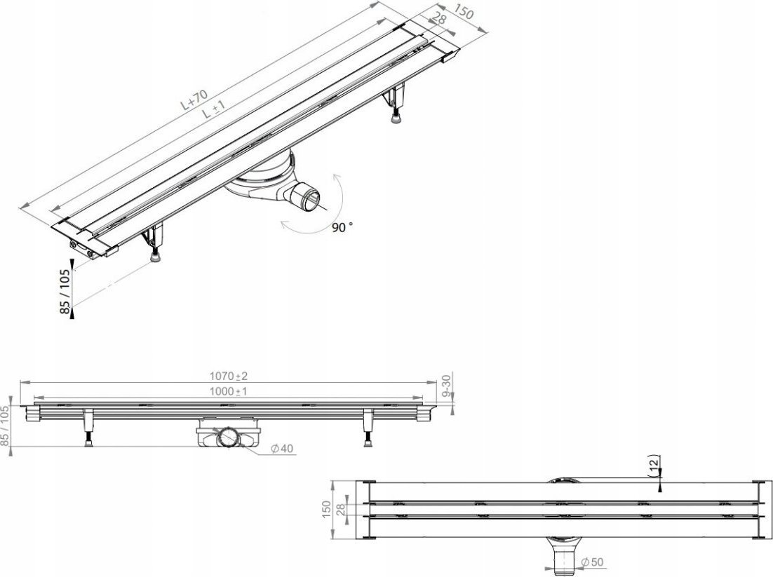EASY LINE Classic γραμμική αποστράγγιση, γυαλισμένη σχάρα, 800 mm Κατασκευαστής: Prevex Μοντέλο: EL-CLPL08A-001 EASY LINE Classic γραμμική αποστράγγιση, γυαλισμένη σχάρα, 800 mm Η αποστράγγιση από τη σειρά Easy Line είναι ένα προϊόν που συνδυάζει μια μοντέρνα, καθολική εμφάνιση με το χρησιμότητα της τεχνολογίας. Διακρίνεται για τη μέγιστη ροή νερού, την ευκολία εγκατάστασης και το υψηλότερο επίπεδο καθαριότητας, καθώς και την ικανότητα προσαρμογής του προφίλ και της σχάρας στις ατομικές ανάγκες. Τεχνικά χαρακτηριστικά: Παροχή: έως 48 l/min. Χωρητικότητα φόρτωσης: μέγιστο 200 kg Μήκος σχάρας (L): 800 mm Ενσωματωμένη σύνδεση: 40/50 Ρυθμιζόμενο ύψος στο επίπεδο πλακιδίων: 85 ή 105 mm Προσαρμογή ύψους σχάρας στο προφίλ: 9-30 mm Επιλογές στεγανοποίησης: α) στάνταρ: ματ + ταινία β) Κατοχυρωμένο με δίπλωμα ευρεσιτεχνίας: ματ + κόλλα ή σχάρα: κλασικό, γυαλισμένο ανοξείδωτο χάλυβα Το προφίλ μπορεί να κοπεί μήκος που κυμαίνεται από 350 mm έως 1070 mm Siphon: καθαρίζεται από την κορυφή