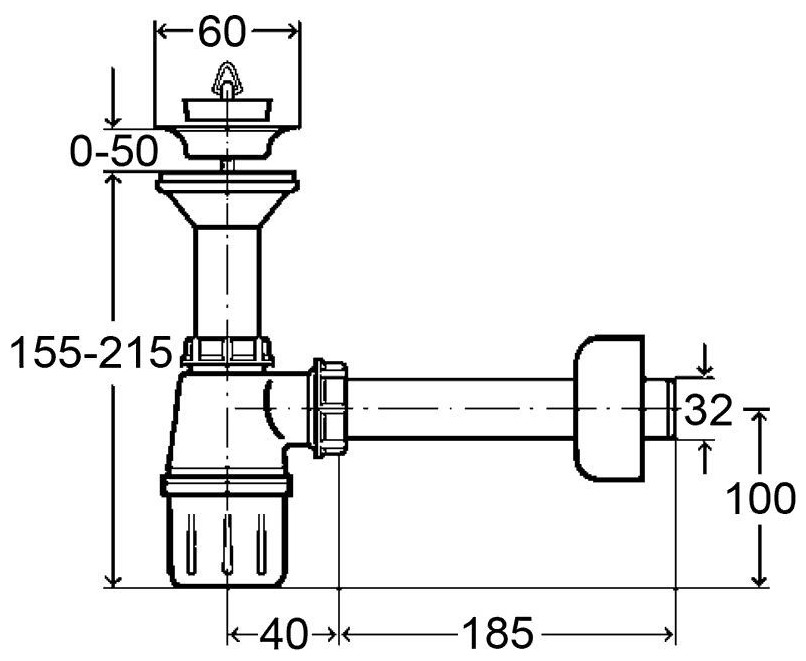 Σιφόνι νιπτήρα μπουκαλιού, διάμετρος 32mm, 103927