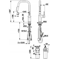 ARMATURA KRAKÓW 6623-422-22 Duero pure move pull-out bateria kuchenna z funkcją filtracji wody i wyciąganą wylewką, stal nierdzewna + filtr hydro+
