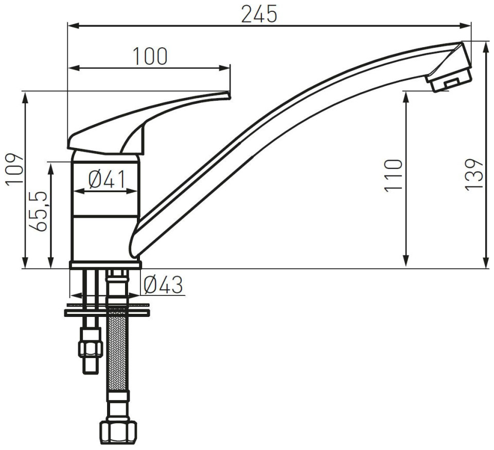 • κεραμική κεφαλή • εγκατάσταση με μία οπή • ρυθμιστής ροής M24x1 • περιστρεφόμενο στόμιο L-220 mm • εύκαμπτες συνδέσεις G3/8 - M10x1 • φινίρισμα χρωμίου