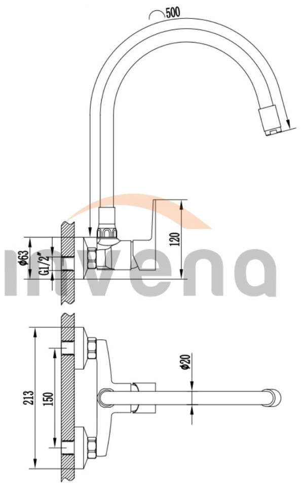 Invena μπαταρία κουζίνας τοίχου Verso, λευκό/χρώμιο BC-82-E2S-L