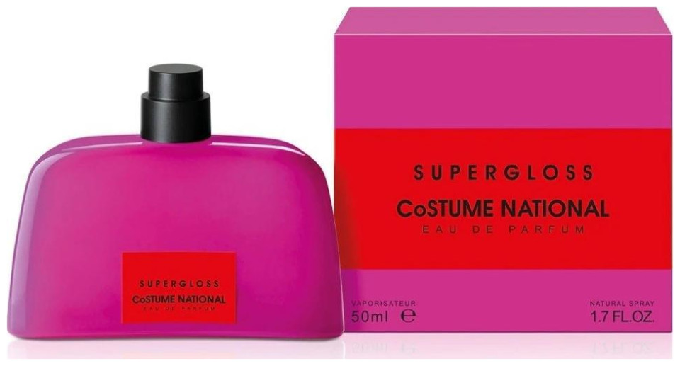 Το Costume National Supergloss είναι ένα Ανατολίτικο Λουλουδένιο άρωμα για γυναίκες, που κυκλοφόρησε το 2021. Ο δημιουργός του μείγματος αρωμάτων είναι ο Dominique Ropion. Οι λεπτές αποχρώσεις του άνθους πορτοκαλιάς, του κρίνου της κοιλάδας και του τριαντάφυλλου ανανεώνονται με τη γλύκα των κόκκινων φρούτων. Στη βάση συναντάμε ξυλώδεις πινελιές από πατσουλί, βέτιβερ και κέδρο.{Type}EDP . {Χωρητικότητα} 50 ml. {Νότες κορυφής} Άνθη πορτοκαλιάς. {Νότες κορυφής} Κρίνος της κοιλάδας. {Βασικές νότες} Πατσούλι. {Νότες καρδιάς} Κόκκινα φρούτα. {Σημειώσεις κορυφής} Τριαντάφυλλο. {Βασικές νότες} Κέδρος. {Base notes} Vetiver. {Ομάδα αρωμάτων} Floral. {Ομάδα αρωμάτων} Ανατολίτικο. {Όνομα} National Supergloss