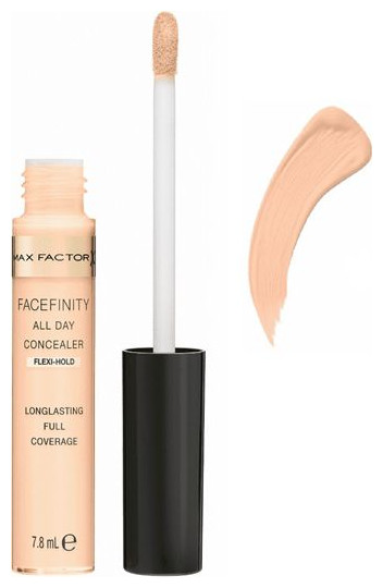 Το Facefinity All Day Concealer της Max Factor παρέχει εξαιρετική κάλυψη όλη την ημέρα. Η ελαφριά και μη βουλωμένη φόρμουλα του καλλυντικού εμπλουτισμένη με τεχνολογία Flexi-hold™ καλύπτει τέλεια τις ατέλειες και αναμειγνύεται με την επιδερμίδα. Το concealer μπορεί να τοποθετηθεί σε στρώσεις, κάτι που σας επιτρέπει να δημιουργήσετε σταδιακή κάλυψη: από μέτρια έως πλήρη.{Type} Με εφαρμογή. {Ιδιότητες} Αδιαφανές. {Προοριζόμενη χρήση} Για το πρόσωπο. {Shade}020