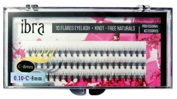 Τεχνητές βλεφαρίδες σε τούφες που δημιουργήθηκαν από το brand Ibra. Το σετ περιλαμβάνει 60 κομμάτια βλεφαρίδες με προφίλ C και μήκος 10 mm. Κατασκευασμένο από συνθετικές τρίχες. Δυνατότητα επαναλαμβανόμενης χρήσης. Παρέχουν απεριόριστες δυνατότητες styling.