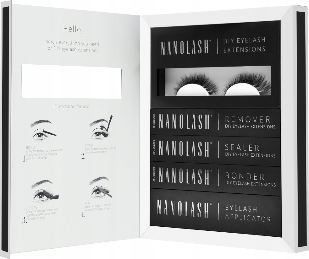 Σετ NANOLASH τεχνητές βλεφαρίδες 10,12,14mm Fantasy 36τμχ. + συγκολλητικό για βλεφαρίδες 5ml + στεγανοποιητικό για βλεφαρίδες 5ml + εφαρμογέας για βλεφαρίδες 1τμχ. + αφαιρετικό για βλεφαρίδες 5ml