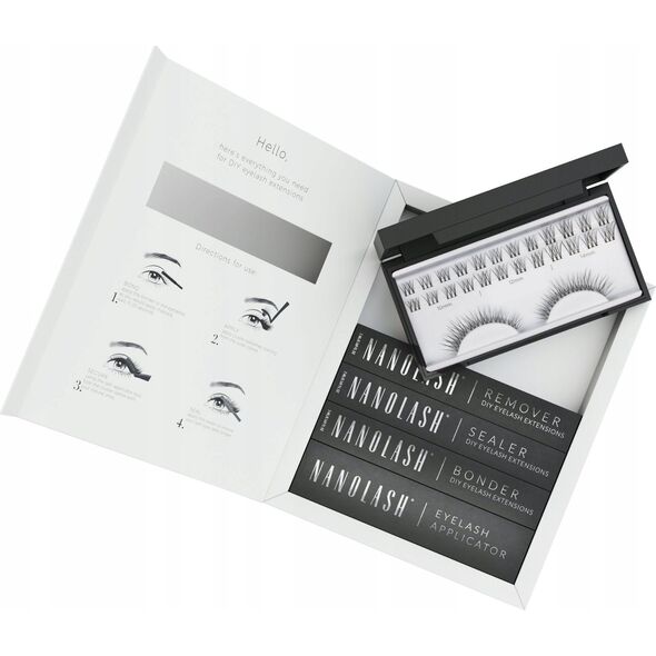 Σετ NANOLASH τεχνητές βλεφαρίδες 10,12,14mm Innocent 36τμχ. + συγκολλητικό για βλεφαρίδες 5ml + σφραγιστικό για βλεφαρίδες 5ml + εφαρμογέας για βλεφαρίδες 1τμχ. + αφαίρεση για βλεφαρίδες 5ml