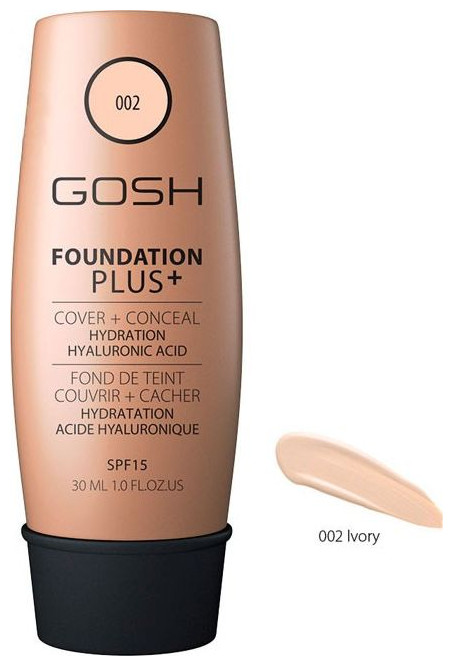 Το Foundation Plus+ είναι ένα καλυπτικό foundation και concealer σε ένα, χαρίζοντας σατινέ φινίρισμα και αποτέλεσμα μεγάλης διάρκειας. Η φόρμουλα του καλλυντικού είναι ελαφριά, διευκολύνοντας την εφαρμογή χωρίς ραβδώσεις. Οι χρωστικές που περιέχονται σε αυτό συνδυάζονται με το δέρμα, δημιουργώντας μια φυσική, υγιή όψη. Χάρη στην περιεκτικότητα σε συστατικά όπως υαλουρονικό οξύ, υγρά θαλάσσια μέταλλα, εκχύλισμα φυκιών και βιταμίνη Ε, έχει ισχυρή ενυδατική και θρεπτική δράση στο δέρμα. Ένα επιπλέον πλεονέκτημα είναι ο παράγοντας SPF 15, ο οποίος προστατεύει από την επιβλαβή ηλιακή ακτινοβολία. Χωρίς parabens και αρώματα.