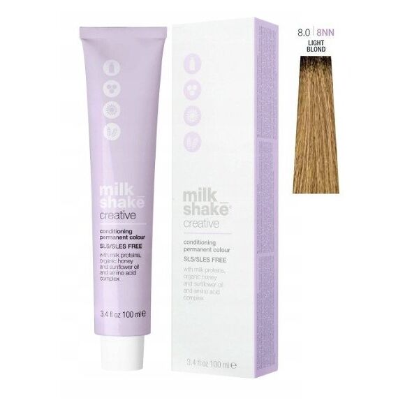 Milk Shake, Creative, SLS/SLES-Free, Μόνιμη Βαφή Μαλλιών, 8.08NN Ανοιχτό Ξανθό Έντονο Φυσικό, 100 ml Για Γυναίκες