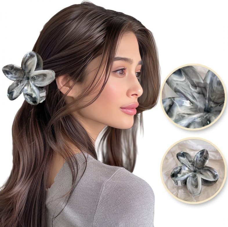 eCarla Spinka do włosów klamra XL kwiat Perłowy melanż 7,5x8cm SP346