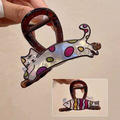 Κλιπ μαλλιών καφέ XL γάτα μαργαριταρένια μάζα 8 cm SP369