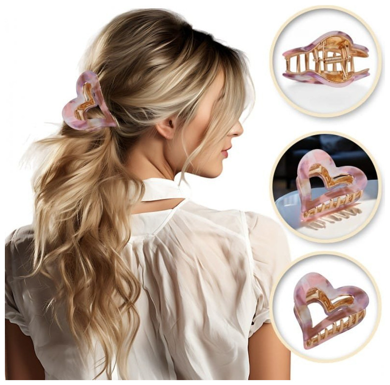 Spinka do włosów, klamra metalowa SERCE panterka kremowa 6cm SP341K