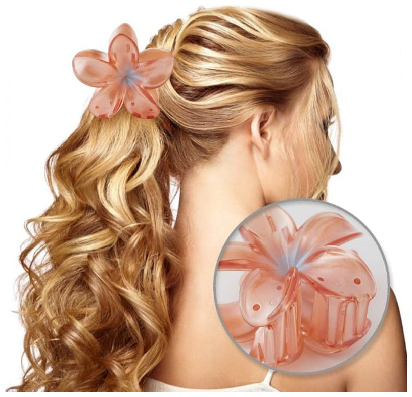 Μεγάλο κλιπ μαλλιών λουλούδι OMBRE διάφανο πορτοκαλί 7,5 x 8cm SP397POM