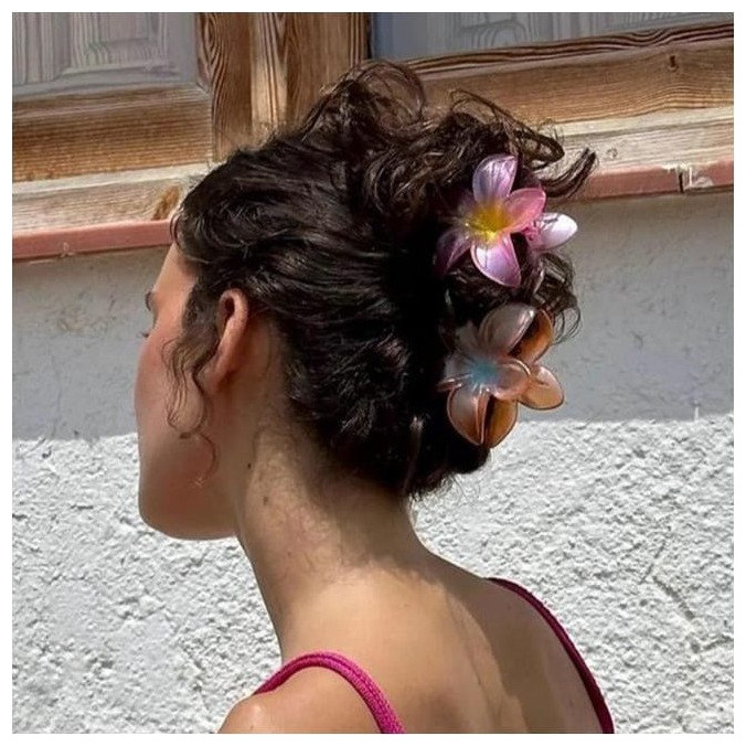 Μεγάλο κλιπ μαλλιών XL λουλούδι OMBRE διάφανο ροζ 7,5 x 8cm SP397R