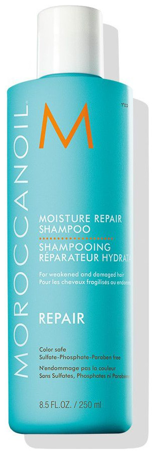 Odbudowuje włosy zniszczone w wyniku koloryzacji, zabiegów chemicznych lub stylizacji termicznej. Szampon nawilżająco-odbudowujący Moroccanoil® Moisture Repair Shampoo łagodnie i skutecznie myje i odbudowuje włosy, odżywiając je, wzmacniając i poprawiając podatność na układanie. Szampon nawilżający, wzbogacony olejkiem arganowym o silnych właściwościach przeciwutleniających, keratyną o działaniu odbudowującym i kwasami tłuszczowymi – regeneruje połamane włosy i zniszczone końcówki, przywracając im elastyczność, nawilżenie i blask.