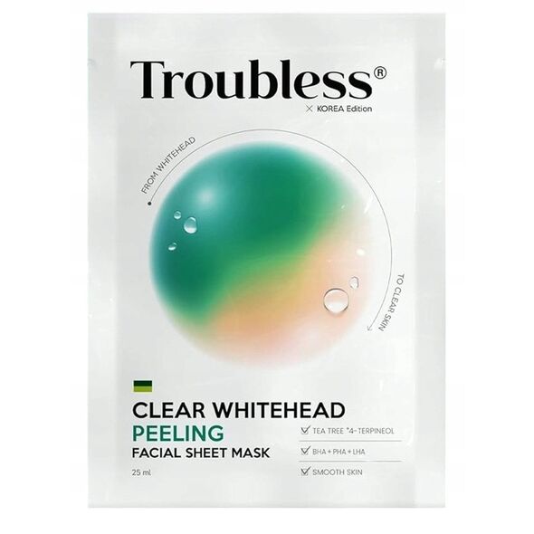 TROUBLESS_Clear Whitehead Peeling Facial Sheet Mask μάσκα απολέπισης σε φύλλο κατά των λευκών στιγμάτων 25ml