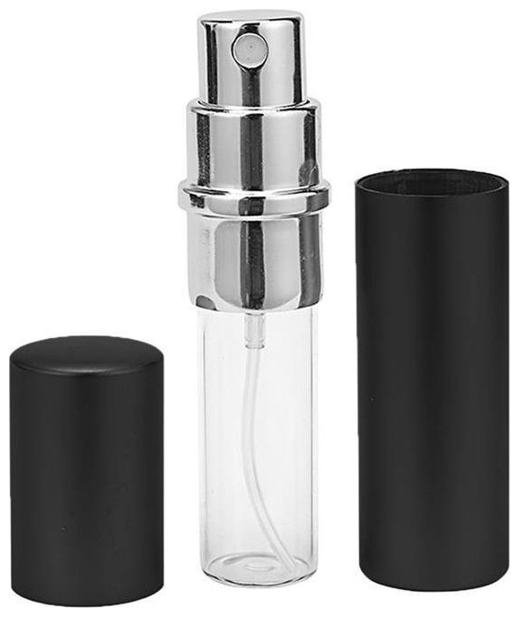 Podróżny, dyskretny atomizer do perfum o pojemności 10 ml. Możesz miej swój ulubiony zapach zawsze przy sobie i zaaplikować go kiedy tylko zajdzie taka potrzeba. Solidna aluminiowa obudowa maskująca szklany zbiorniczek. Akceptowany w bagażu podręcznym linii lotniczych. Cechy produktu: Solidnie wykonany i zamknięty w aluminiową obudowę atomizer do perfum (akceptowany przez linie lotnicze w bagażu podręcznym). Kompaktowe wymiary umożliwiają noszenie go zawsze ze sobą. Dzięki temu dozownikowi nie musisz już nosić ze sobą całego dużego flakonu z perfumami i obawiać się że go stłuczesz lub zgubisz. Łatwe napełnianie w kilka sekund - wystarczy odkręcić spray i zlać atomizer perfumami. UWAGA: Atomizer może być napełniany wyłącznie perfumami z końcówką psikającą. Perfumy z flakonika należy przelać do zbiorniczka typu spray. Specyfikacja: Materiał: aluminium + szkło Pojemność: 10 ml (wystarcza na około 120 pryśnięć) Możliwość demontażu Solidny, szklany zbiorniczek (fiolka) Rozmiar: 9,5 cm x 2,3 cm Kolor: czarny