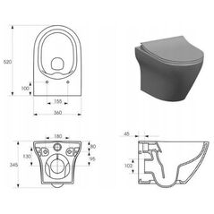 SB574 MZ UM LARGA OVAL CLEAN ON DESKA SLIM WRAP DUR WO ŁW ANTRACYT BOX
