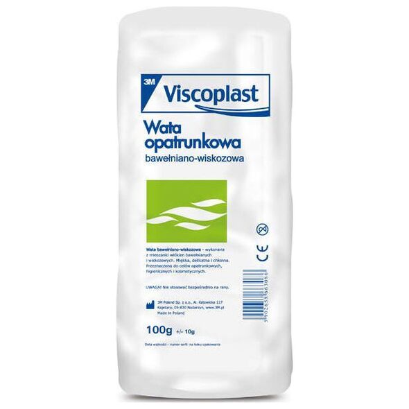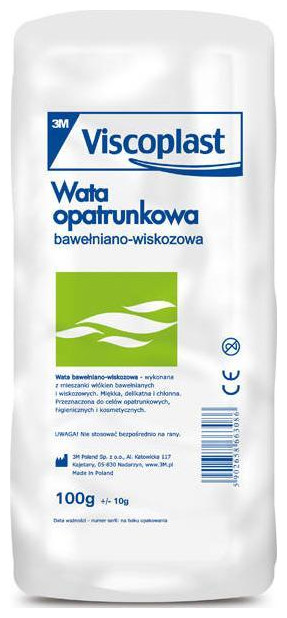 Περιγραφή προϊόντος: Επίδεσμος από βαμβάκι από μείγμα βαμβακιού και ινών βισκόζης. μαλακός, λεπτός, απορροφητικό. Βαμβάκι Viscoplast - εφαρμογή: Για λόγους υγιεινής και καλλυντικού. Χωρητικότητα συσκευασίας: 100 γραμμάρια.{Τύπος} Βαμβάκι