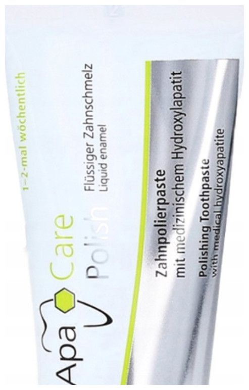 ApaCare Professional Home Smoothing Paste Παρέχει απαλότητα στο σμάλτο Το ApaCare Professional περιέχει 3% νανοϋδροξυαπατίτη και ένα λειαντικό παράγοντα (RDA περίπου 180). Χάρη σε αυτό, χαρακτηρίζεται από υψηλή καθαριστική ισχύ και λειαίνει αποτελεσματικά τη δομή του σμάλτου. Το προϊόν πρέπει να χρησιμοποιείται μία ή δύο φορές την εβδομάδα. Τα δόντια πρέπει να βουρτσίζονται με ApaCare Professional στο σπίτι αντί για οδοντόκρεμα ApaCare Remineralizing. Όταν καθαρίζετε τα δόντια σας, τα σωματίδια της πάστας καθαρίζουν καλά τα δόντια σας και ταυτόχρονα προστατεύουν από την υπερευαισθησία και τον εκ νέου αποχρωματισμό. Το προϊόν συνιστάται ιδιαίτερα σε άτομα επιρρεπή σε αποχρωματισμό μετά την κατανάλωση καφέ, τσαγιού, κόκκινου κρασιού ή καπνίσματος. Επειδή ο καθαρισμός με λείανση πάστας αντικαθιστά τη χρήση της πάστας για καθημερινή υγιεινή, περιέχει φθοριούχο νάτριο (1450 ppmF- για επιπλέον προστασία από την ανάπτυξη τερηδόνας. Το προϊόν συνιστάται για ενήλικες και εφήβους άνω των 12 ετών. Το ApaCare Professional Home είναι ένα πάστα εξομάλυνσης με σύνθεση πολύ παρόμοια με αυτές που χρησιμοποιούν οι οδοντιάτροι και οι οδοντιάτροι για τον επαγγελματικό καθαρισμό των δοντιών σε οδοντιατρείο.{Προβλεπόμενη χρήση} Για ενήλικες. {Προβλεπόμενη χρήση} Για ενήλικες. {Προβλεπόμενη χρήση} Για ενήλικες. {Προβλεπόμενη χρήση} Για ενήλικες. {Προβλεπόμενη χρήση} Για ενήλικες. {Προβλεπόμενη χρήση} Για ενήλικες. {Προβλεπόμενη χρήση} Για ενήλικες. {Προβλεπόμενη χρήση} Για ενήλικες. {Προβλεπόμενη χρήση} Για ενήλικες. {Προβλεπόμενη χρήση} Για ενήλικες. {Προβλεπόμενη χρήση} Για ενήλικες. {Προβλεπόμενη χρήση} Για ενήλικες
