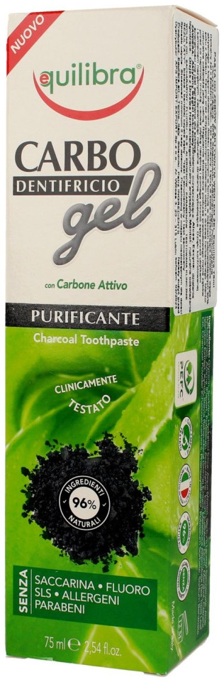 Η οδοντόκρεμα Equilibra® Carbo Gel Charcoal είναι ένα λεπτό τζελ με φρέσκια γεύση, χωρίς σακχαρίνη. Συνδυάζει την καθαριστική δράση του ενεργού άνθρακα με την καταπραϋντική δράση της Αλόης (υπάρχει στη φόρμουλα σε ποσότητες που αντιστοιχούν στο 30% του χυμού Αλόης), της Escina και την αντισηπτική δράση του ελαίου τεϊόδεντρου. Η μενθόλη αναζωογονεί φυσικά τη στοματική κοιλότητα. Όταν χρησιμοποιείται τακτικά ενώ βουρτσίζετε σωστά τα δόντια σας για τουλάχιστον ένα λεπτό, αφαιρεί την πλάκα και βοηθά στην προστασία των δοντιών σας από την τερηδόνα και την πέτρα, ενώ παρέχει ένα φυσικό αποτέλεσμα λεύκανσης. Χάρη στην ελεγχόμενη τριβή, δεν είναι επιθετικό στο σμάλτο.