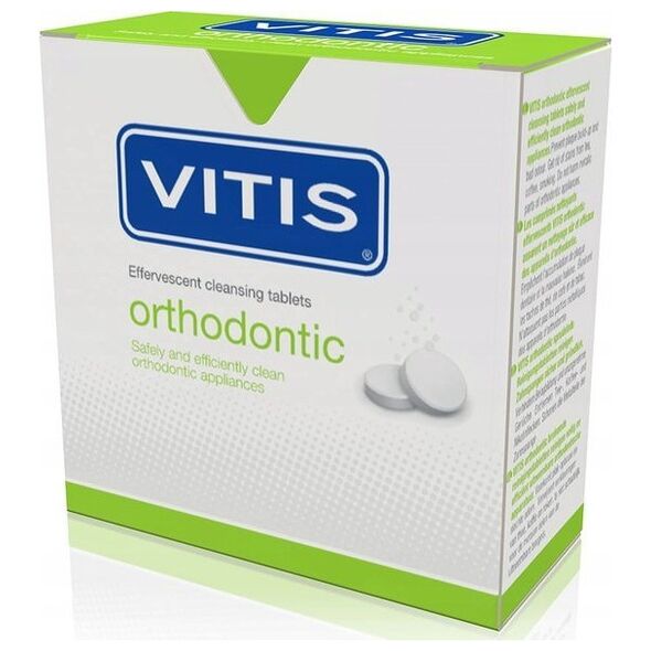 Τα Ορθοδοντικά αναβράζοντα δισκία καθαρισμού VITIS καθαρίζουν αποτελεσματικά και με ασφάλεια τις αφαιρούμενες ορθοδοντικές συσκευές, αφαιρούν την οδοντική πλάκα (βιοφίλμ), διασφαλίζοντας τη σωστή στοματική υγιεινή.