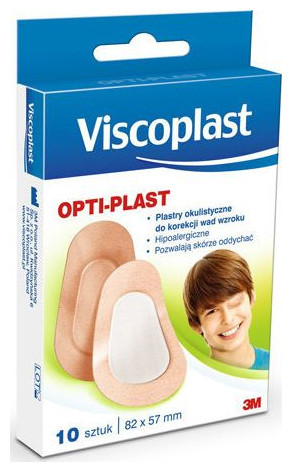 Ενδείξεις: Χρήση σε οφθαλμική αποφρακτική θεραπεία, π.χ. Ιδιότητες: Επιθέματα Vicoplast Opti-plast σε μη υφασμένη βάση με απαλό επίδεσμο που επιτρέπει την ελεύθερη κίνηση του βολβού του ματιού. Το έμπλαστρο μπορεί να φορεθεί κάτω από γυαλιά και έχει χρώμα σάρκας. Υποαλλεργικό, με υψηλή διαπερατότητα υδρατμών και αέρα Τρόπος χρήσης: Πλύνετε και στεγνώστε το δέρμα γύρω από το μάτι, αφαιρέστε το χαρτί που συγκρατεί το έμπλαστρο. Κλείστε ελαφρά τα μάτια σας, προσέχοντας να μην τεντώσετε τους μυς σας. Μην σφίγγεις τα μάτια σου. Τοποθετήστε τον επίδεσμο στο μάτι, με τη στενότερη πλευρά προς τη μύτη και μετά ξεκινήστε να κολλάτε από την πλευρά της μύτης προς το φρύδι. Μην τραβάτε το έμπλαστρο ή το δέρμα γύρω από το μάτι. Αφού εφαρμόσετε το έμπλαστρο, πιέστε ελαφρά το αυτοκόλλητο μέρος γύρω από το μάτι με το δάχτυλό σας. Συνιστάται να το αλλάζετε όταν λερωθεί ή ξεφλουδίσει μόνο του. Το βράδυ, το έμπλαστρο πρέπει να αφαιρείται και η περιοχή γύρω από το μάτι, μετά το πλύσιμο και το στέγνωμα, να αλείφεται με αλοιφή βιταμίνης Α Σύνθεση: Το σετ περιέχει 10 έμπλαστρα διαστάσεων 82 mm x 57 mm.{Type} Σοβάδες επίδεσης