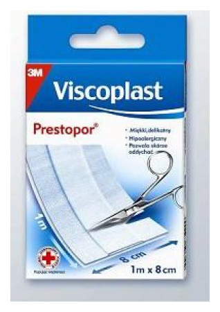 Γύψος VISCOPLAST Prestopor, λευκός, για κοπή, 1 mx8 cm, 1 τεμάχιο Για επίδεση μικροτραυμάτων και κοψίματα με μη υφασμάτινο επίδεσμο με ακρυλική κόλλα, σοβά από μη υφαντό ύφασμα με υψηλή διαπερατότητα υδρατμών και αέρα (. επιτρέπει στο δέρμα να αναπνέει), προστατεύει από τη μόλυνση και τη βρωμιά.{Type} Σοβάδες επίδεσης