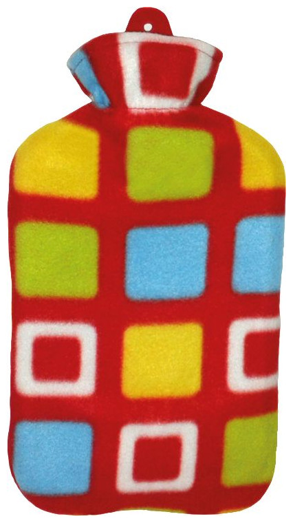 Μια λαστιχένια φιάλη ζεστού νερού 2 λίτρων σε κάλυμμα είναι μια κλασική λύση για άτομα που αναζητούν απλές και φυσικές λύσεις στην οικιακή θεραπεία Η αποτελεσματική φιάλη ζεστού νερού που προσφέρουμε έχει πολλές χρήσεις - μπορεί να χρησιμοποιηθεί για τη μείωση του πυρετού ή ως α ζεστή κομπρέσα καταπραϋντικών τεντωμένων μυών ή διαφόρων ειδών πόνου, π.χ. Το κάλυμμα επιτρέπει την άμεση επαφή με το δέρμα. Εφαρμογή: Προετοιμάστε ζεστό νερό σε θερμοκρασία περίπου 50°. Ξεβιδώστε το καπάκι και γεμίστε αργά τη φιάλη ζεστού νερού με νερό μέχρι τα ¾ του όγκου της. Κατά το γέμισμα, κρατήστε το μπουκάλι ζεστού νερού από το λαιμό σε κατακόρυφη θέση. Απαλλαγείτε από την περίσσεια αέρα, γείροντας αργά το μπουκάλι ζεστού νερού μέχρι να εμφανιστεί το νερό στην έξοδο του. Για ευκολία, μπορείτε να ακουμπήσετε τη φιάλη ζεστού νερού σε μια επίπεδη επιφάνεια Κλείστε τη βρύση προσεκτικά και ελέγξτε τη στεγανότητά της γυρνώντας τη φιάλη ζεστού νερού ανάποδα. Στη συνέχεια τοποθετήστε το καπάκι. Αποθήκευση Μετά τη χρήση, ρίξτε το νερό και κρεμάστε το μπουκάλι ζεστού νερού ανάποδα για να στεγνώσει. Αποθηκεύστε χωρίς να βιδώσετε το καπάκι σε ξηρό, σκοτεινό και δροσερό μέρος. Προστατέψτε από το άμεσο ηλιακό φως. Αποφύγετε την επαφή με συσκευές θέρμανσης και αποθήκευση σε υψηλές θερμοκρασίες ή στον ήλιο.{Type} Καουτσούκ