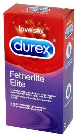 Durex Elite 12 τμχ - "εύκολο", εύκολο στην εφαρμογή - χωρίς σπερματοκτόνο - επιπλέον ποσότητα ενυδατικού παράγοντα - πάχος τοιχώματος: 55 microns, διάμετρος: 54 mm, μήκος: 205 mm - διαφανές - φυσικό καουτσούκ λατέξ{Ποσότητα} 12 τεμ. {Type} Κλασικό