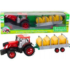 Μεγάλο Τρακτέρ LeanToys Γεωργικό Με Τρέιλερ Και Δέματα Σανό Κινητήρας Κόκκινο