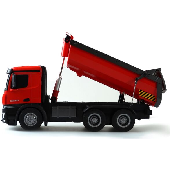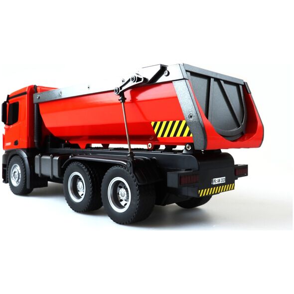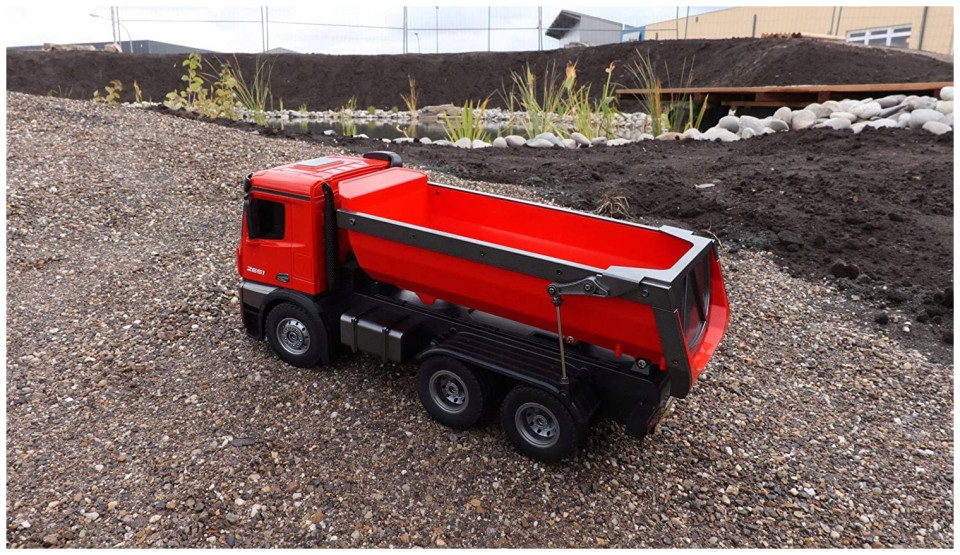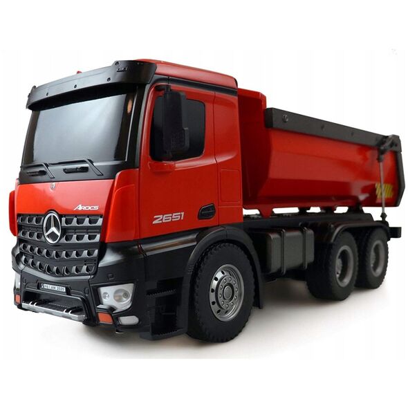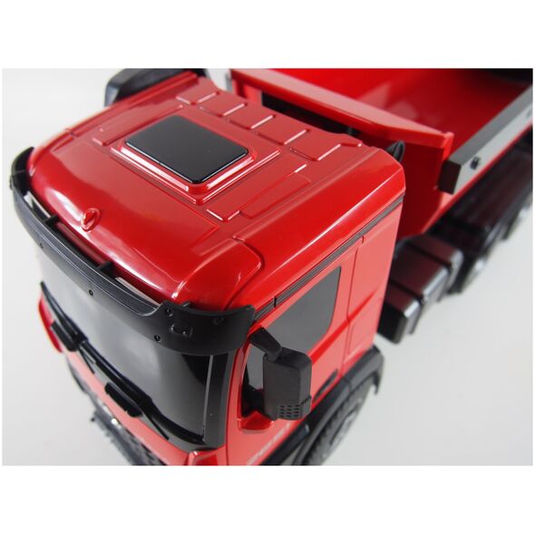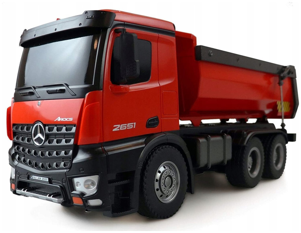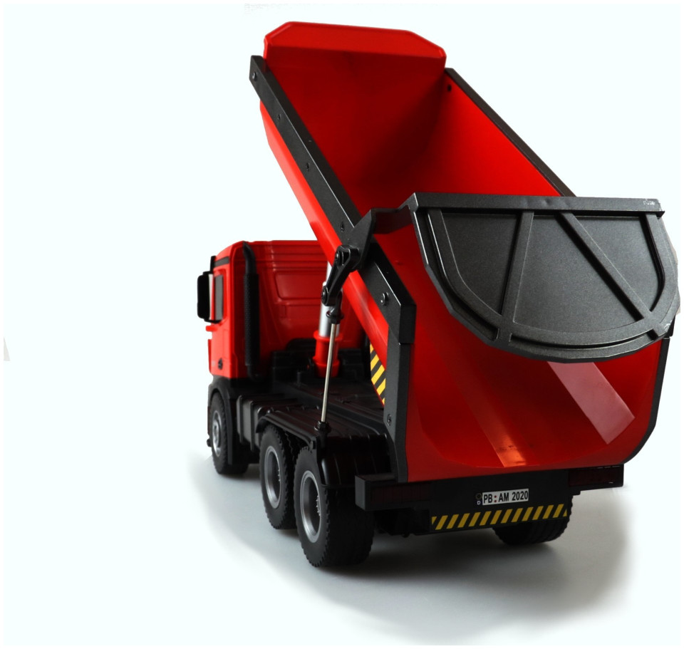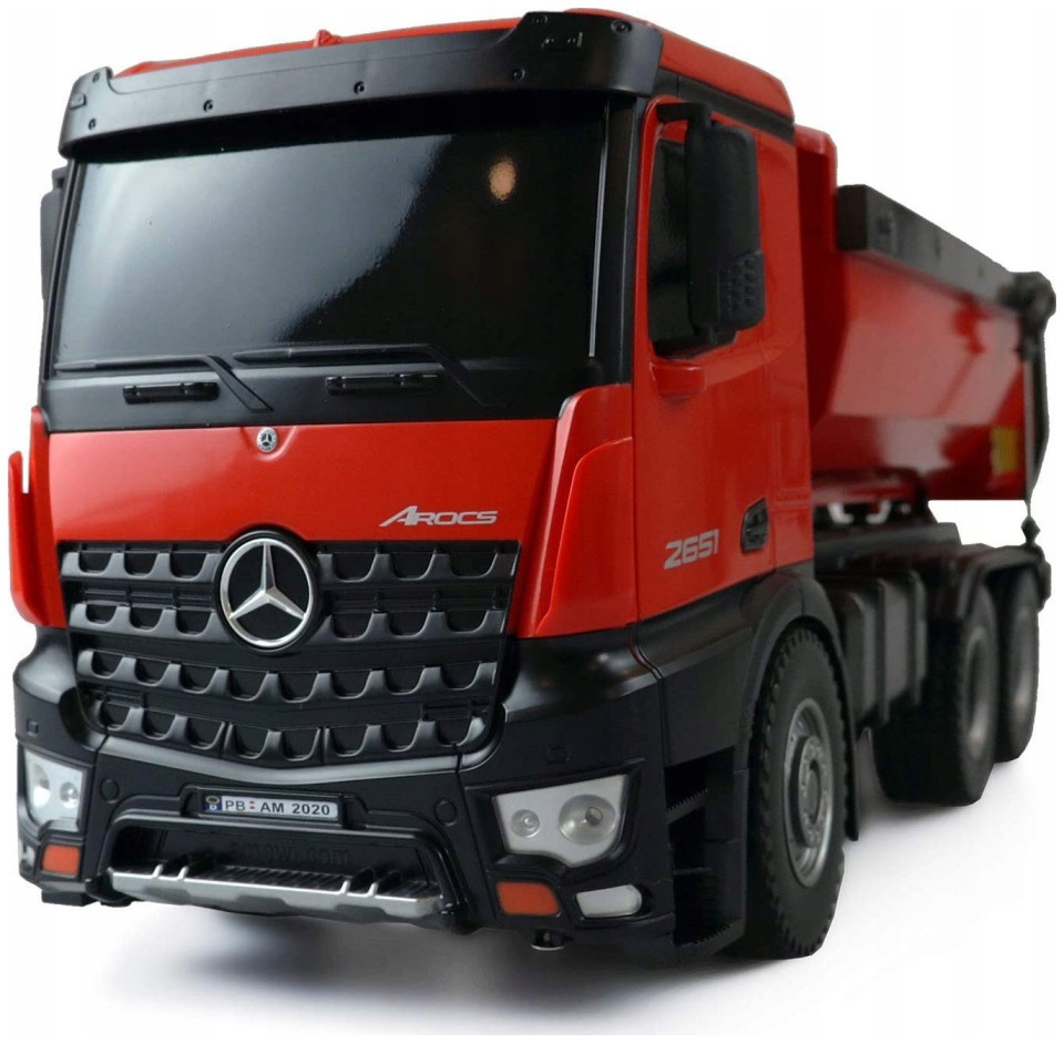 Amewi 22407 Mercedes Benz Arocs Elektryczny model ciężarówki RC RtR z akumulatorem i ładowarkąŚwietny model w skali wywrotki Mercedes Arocs. Arocs to nazwa słynnej serii ciężarówek Mercedes-Benz firmy Daimler AG. Pojazdy budowlane Arocsa po raz pierwszy zaprezentowano w 2013 roku i od tego czasu można je znaleźć na wielu placach budowy na całym świecie. Charakteryzują się wysoką wydajnością, niezawodnością i solidnością. Dzięki temu licencjonowanemu modelowi prawie wszystkimi funkcjami można sterować, tak jak w przypadku jego starszego brata, dzięki czemu serca fanów skalera biją szybciej. Model posiada napęd na 4 koła i obudowaną skrzynię biegów. Dzięki temu jest chroniony przed wodą rozpryskową i dzięki temu w pełni nadaje się do użytku w terenie. Struktura i lakierowanie tego wysokiej jakości modelu odpowiada oryginałowi. To właśnie sprawia, że ten model jest wyjątkowy pod względem wzornictwa i prezentacji. (z wyjątkiem baterii do nadajnika)Możliwość sterowania 10 kanałami System 2,4 GHz (bezawaryjny) Funkcje: do przodu / do tyłu / w prawo Po lewej, włączanie / wyłączanie dźwięku, światło, koryto można sterować oddzielnie Akumulator 7,2 V NiMH 400 mAh Zasięg transmisji: ok. 30 metrów