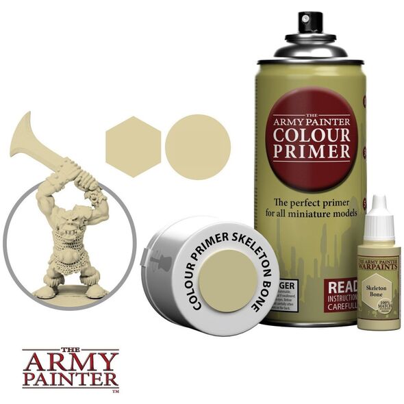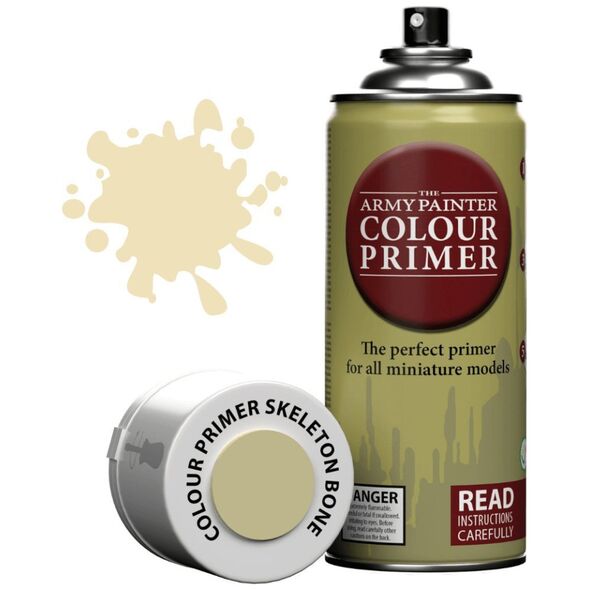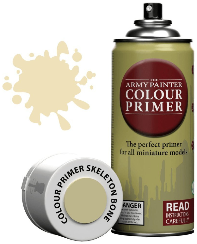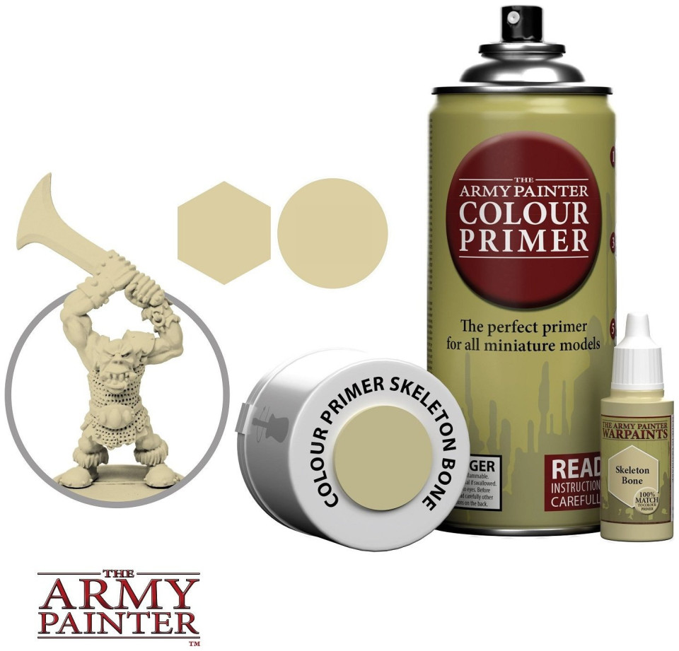 SPRAY PRIMER SKELETON BONE THE ARMY PAINTER Το καλύτερο ακρυλικό χρώμα που στεγνώνει γρήγορα! Είναι ιδανικό για την κάλυψη φιγούρων στον κόσμο των νεκρών Όπως υποδηλώνει το όνομα, αυτή η βάση χρώματος έχει σχεδιαστεί για να μιμείται το χρώμα των οστών. Είναι επίσης ολοένα και πιο δημοφιλές για τις βρετανικές μονάδες του Β 'Παγκοσμίου Πολέμου στην έρημο, ως πιο ανοιχτόχρωμη εναλλακτική λύση στο Desert Yellow Η έντονη συγκέντρωση χρωστικών ουσιών σημαίνει ότι δεν χρειάζεται να εφαρμοστούν πολλαπλές στρώσεις. Κατάλληλο για κάλυψη επιφανειών από μέταλλο, πλαστικό και ρητίνη.⭐ Εξοικονομεί χρόνο στο βάψιμο, καλύψτε το μοντέλο με βασική βαφή στο επιλεγμένο χρώμα.⭐ Χάρη στην ακριβή μύτη και το ακρυλικό χρώμα που στεγνώνει γρήγορα, θα πετύχετε τέλεια κάλυψη!⭐ Σας επιτρέπει για να διατηρείται κάθε λεπτομέρεια στη μινιατούρα σε άψογη κατάσταση. Πώς χρησιμοποιείται; Σημείωση: ΠΑΝΤΑ δοκιμάζετε πρώτα σε ένα εφεδρικό μοντέλο!⏩ Σπάστε απαλά τη σφράγιση.⏩ Ανακινήστε το μπουκάλι για 1 λεπτό.⏩ Ψεκάστε το μοντέλο από απόσταση 15-20 cm.⏩ Ψεκάστε πολλές λεπτές στρώσεις, αφήνοντας το χρώμα να στεγνώσει μεταξύ των εφαρμογών.⏩ Φυλάσσετε σε θερμοκρασία δωματίου{Type} Χρώματα . {Type} Χρώματα . {Type} Χρώματα . {Type} Χρώματα