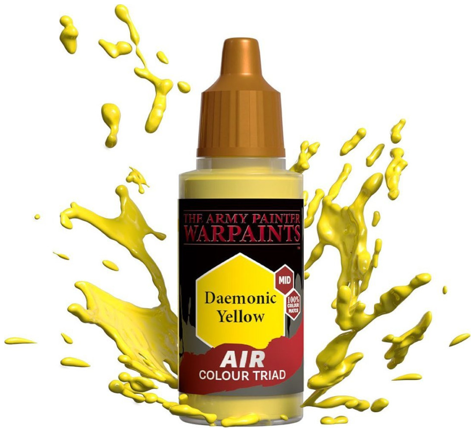 The Army Painter Warpaints Air: Daemonic Yellow. Μοντέλο: Ακρυλικό χρώμα, Χρώμα βαφής: Κίτρινο, Υλικό: Υγρό. Βάρος προϊόντος: 31 g Ποσότητα ανά συσκευασία: 1 τεμ.{Type} Χρώματα