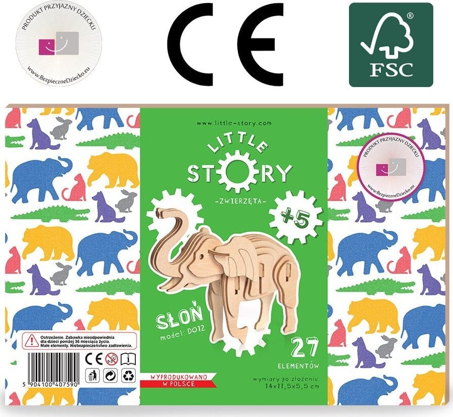 Little-Story Little Story Ξύλινο Παζλ Μοντέλο 3D - Ελέφαντας