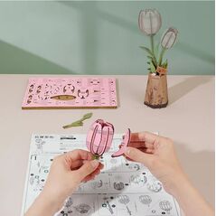 Robotime Drewniane puzzle model 3D - Różowy Tulip