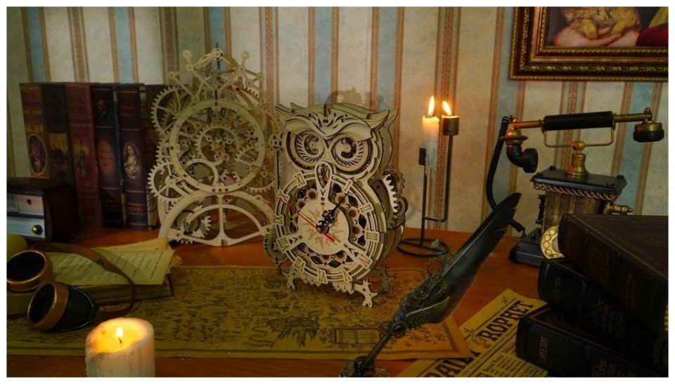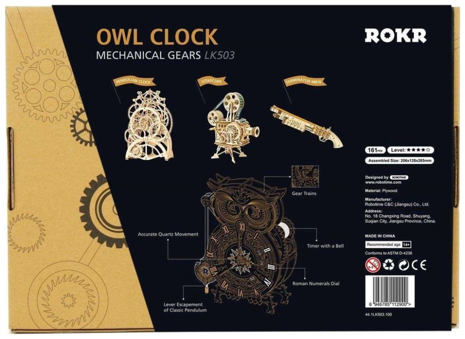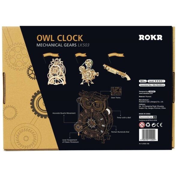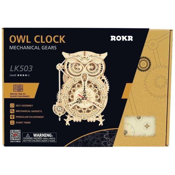 Robotime Technology ROBOTIME Ξύλινο Μοντέλο Παζλ 3D Ρολόι Κουκουβάγια