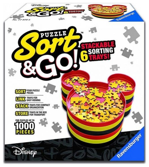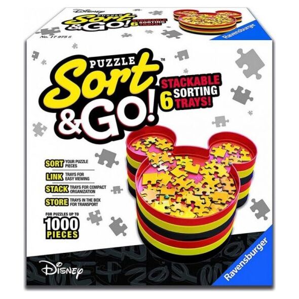 Ένας ταξινομητής παζλ σε σχήμα κεφαλιού του Μίκυ Μάους. Χάρη στα ανθεκτικά, πολύχρωμα κουτιά, μπορείτε να χωρίσετε και να αποθηκεύσετε τα κομμάτια του παζλ Για ευκολότερη αποθήκευση, μπορείτε να στοιβάζετε τα κουτιά το ένα πάνω στο άλλο. Το σετ περιλαμβάνει 6 κασέτες σε 3 χρώματα Διαστάσεις συσκευασίας: 20,2 x 20,2 x 10 cm{Ηλικία} Από 6 ετών
