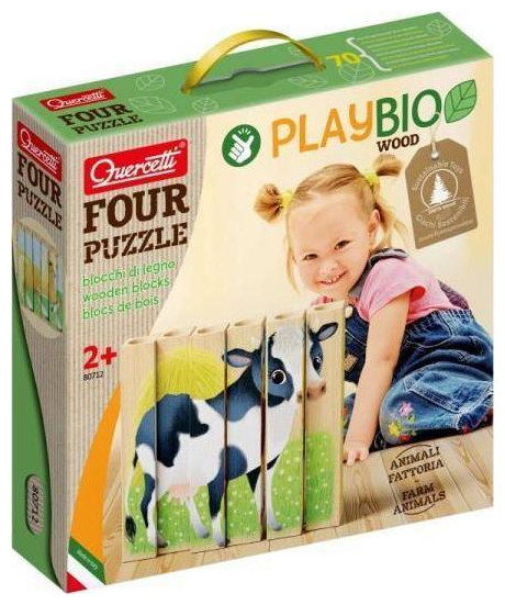 6 ελαφριά ξύλινα μπλοκ από τα οποία μπορείτε να τακτοποιήσετε 4 παζλ σε οριζόντια και κάθετη θέση. Αυτό το φαινομενικά εύκολο παζλ κρύβει εκπληκτικές δυσκολίες και τραβάει την προσοχή του μικρού παιδιού για μεγάλο χρονικό διάστημα.