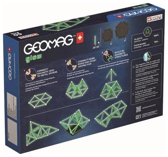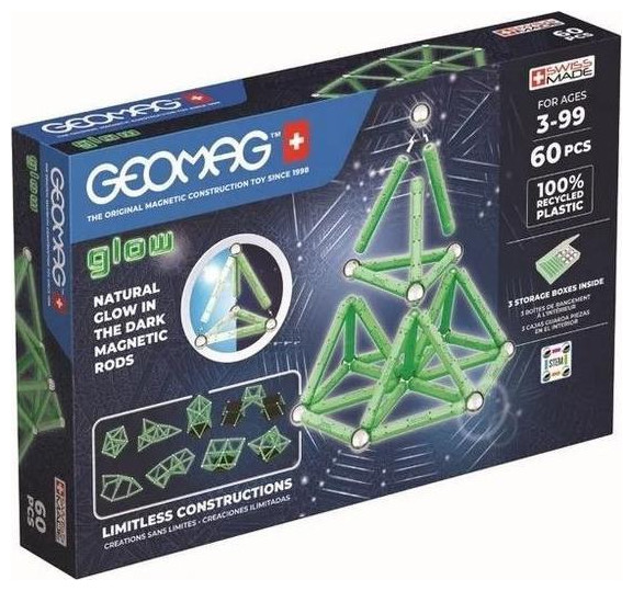 Η σειρά Geomag Glow είναι μια εντελώς νέα διάσταση διασκέδασης! Τα διακοσμητικά στοιχεία στα πάνελ λάμπουν στο σκοτάδι! Τα δομικά στοιχεία Geomag θα επιτρέψουν στο παιδί σας να αναπτύξει τις χειρωνακτικές του δεξιότητες και τη χωρική σκέψη.