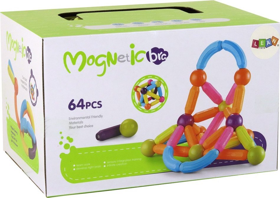 Μεγάλο σετ μαγνητικών μπλοκ LeanToys σε θήκη, 64 στοιχείων