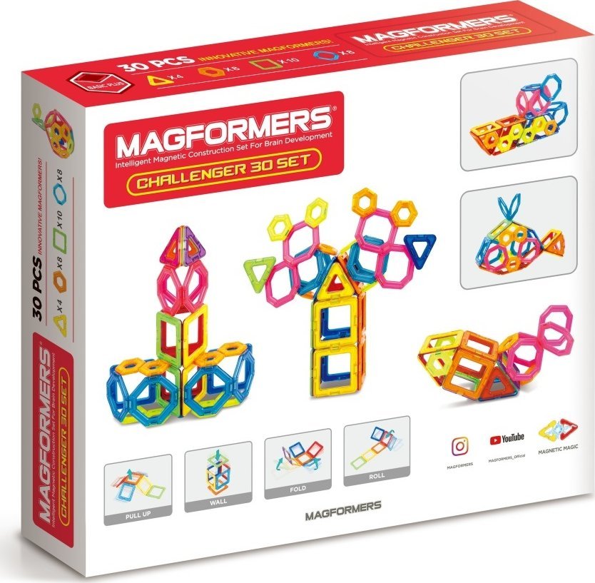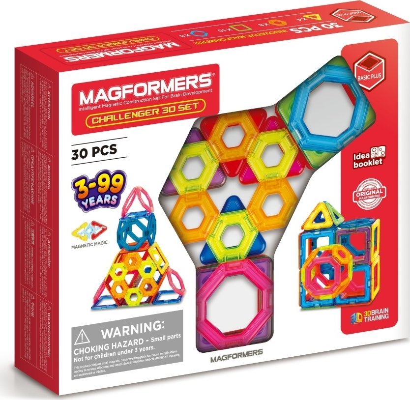 Challenger 30 elementów Autor: praca zbiorowa Dostawca: Azymut format: 28.0x24.0cm kategoria wiekowa: 12-14 lat, 15-99 lat, 3-4 lata, 5-7 lat, 8-11 lat język wydania: polski dla kogo: dla chłopca, dla dziewczynki data wydania: 11-10-2023 typ oprawy: inna rok wydania: 2023 Wydawca: MAGFORMERS EAN: 0730658150207MAGFORMERS CHALLENGER SET to klocki z wbudowanymi silnymi magnesami neodymowymi, które zawsze się przyciągają. Wystarczy zbliżyć do siebie ściankami dwa klocki, a one natychmiast ze sobą się połączą. Za pomocą klocków wzorowanych na kształt figur geometrycznych można zbudować wspaniałe trójwymiarowe budowle. W skład zestawu wchodzą: 4 trójkąty, 8 pięciokątów, 10 kwadratów oraz 8 siedmiokątów.