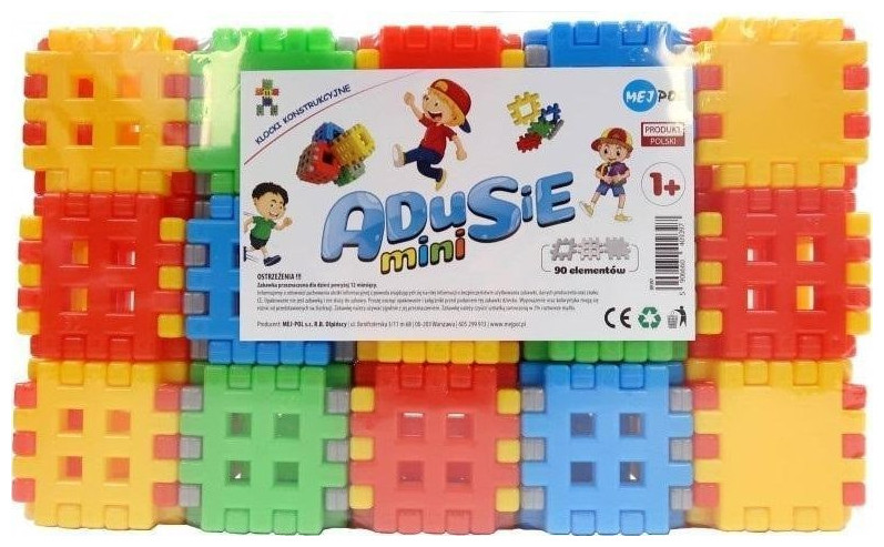 Ponadczasowe klocki w nowej odsłonie. Podstawowy klocek ma wielkość 65x9x65mm. Układanie klocków niesie za sobą wiele korzyści pobudza wyobraźnie poprawia małą motorykę pozwala na naukę kolorów planowania przestrzennego oraz logicznego myślenia. Dzięki pomniejszeniu klasycznych wafli już najmłodsze dzieci mogą korzystać z plusów które daje układanie klocków. Produkt przeznaczony dla dzieci powyżej 1 roku. Wykonany w Polsce z atestowanych surowców.