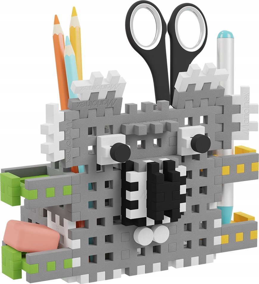 Mini Waffle Przybornik Koala 70 el. MarioinexZamień biurko swojego dziecka w atrakcyjny ogród zoologiczny, którego centralnym punktem będzie przybornik koala! Zbuduj pomysłowy i praktyczny piórnik, żebyś już nigdy więcej nie musiał szukać zaginionych nożyczek, ulubionego długopisu lub czerwonej kredki! Skonstruowanie przybornika koala będzie doskonałą zabawą, a przy tym nauką, która rozwinie wyobraźnie Twojej pociechy i pokaże, że nie każdy pomysł musi być oczywisty. Rozwijaj wyobraźnię swojej pociechy poprzez zabawę – udowodnij, że nauka to także świetna przygoda Specyfikacja zestawu: 70 klocków Książeczka z instrukcją Klocki wyprodukowane w Polsce Klocki i opakowania wytworzone z materiałów odnawialnych w recyklingu Dla dzieci w wieku od 3 lat Zalety zestawu: Rozwija wyobraźnię i kreatywność poprzez wspólną zabawę Instrukcja, jakiej jeszcze nie było! W 100% bezpieczne, certyfikowane materiały Atrakcyjna, wielogodzinna zabawa nie tylko dla dzieci! Konstruuj kształty w 2D i 3D MARIO-05739