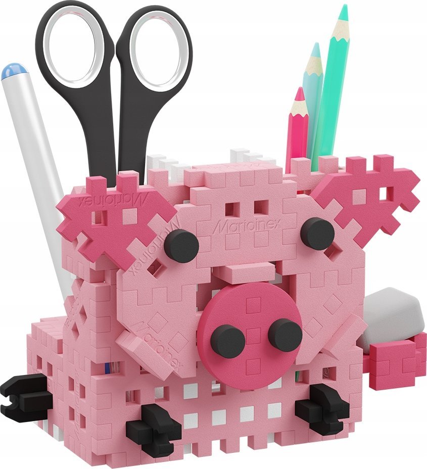Mini Waffle Przybornik Świnka 70 el. MarioinexZamień zwyczajny piórnik na uroczą świnkę, która od dzisiaj zamieszka na biurku Twojej pociechy. To oryginalny i praktyczny sposób na utrzymanie porządku i sprawienie, że nożyczki, kredki, długopisy i inne przybory będą zawsze we właściwym miejscu. Spraw ogromną frajdę sobie i swojemu dziecku, kiedy wspólnie będziecie konstruować jedyny w swoim rodzaju świnko-przybornik. Rozwijaj wyobraźnię swojej pociechy poprzez zabawę – udowodnij, że nauka to także świetna przygoda Specyfikacja zestawu: 70 klocków Książeczka z instrukcją Klocki wyprodukowane w Polsce Klocki i opakowania wytworzone z materiałów odnawialnych w recyklingu Dla dzieci w wieku od 3 lat Zalety zestawu: Rozwija wyobraźnię i kreatywność poprzez wspólną zabawę Instrukcja, jakiej jeszcze nie było! W 100% bezpieczne, certyfikowane materiały Atrakcyjna, wielogodzinna zabawa nie tylko dla dzieci! Konstruuj kształty w 2D i 3D MARIO-05722