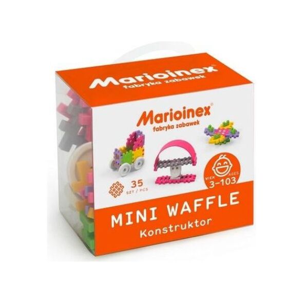 Mini Waffle Constructor 35 τεμαχίων. Το σετ περιλαμβάνει νέα μπλοκ που διευρύνουν τις δυνατότητες κατασκευής. Ένα προϊόν αφιερωμένο στα κορίτσια είναι ένα καινοτόμο, μαλακό υλικό που μοιάζει με καουτσούκ με γνωστό σχήμα. Το μειωμένο μέγεθος δίνει πολύ μεγαλύτερη κινητικότητα και εντελώς νέες δυνατότητες Χάρη στη νέα τεχνολογία παραγωγής που χρησιμοποιήσαμε, τα μπλοκ μπορούν να λυγίσουν και να είναι αθόρυβα και ασφαλή για παιχνίδι. ώστε τα παιδιά μας να μην ανησυχούν για τη διευθέτηση ενός μεγαλύτερου χώρου Διαστάσεις συσκευασίας: 9 cm x 8 cm x 6 cm Διαστάσεις τυπικού μπλοκ: 3,5 cm x 3,5 cm x. 0,5 cm Προειδοποίηση Το παιχνίδι δεν είναι κατάλληλο για παιδιά κάτω των 36 μηνών Περιέχει μικρά κομμάτια που καταπίνονται εύκολα. Αυτό το προϊόν πληροί τα ευρωπαϊκά πρότυπα. Αφαιρέστε τα εξαρτήματα της συσκευασίας πριν δώσετε το παιχνίδι στο παιδί σας. Κρατήστε την ετικέτα καθώς περιέχει σημαντικές πληροφορίες. Τα χρώματα των στοιχείων μπορεί να διαφέρουν από αυτά που παρουσιάζονται στη συσκευασία. Συντήρηση: το παιχνίδι πρέπει να πλένεται με τρεχούμενο νερό με σαπούνι.{Ηλικία} Από 3 ετών. {Type} Βάφλες . {Υλικό} Πλαστικό . {Αριθμός στοιχείων} 35