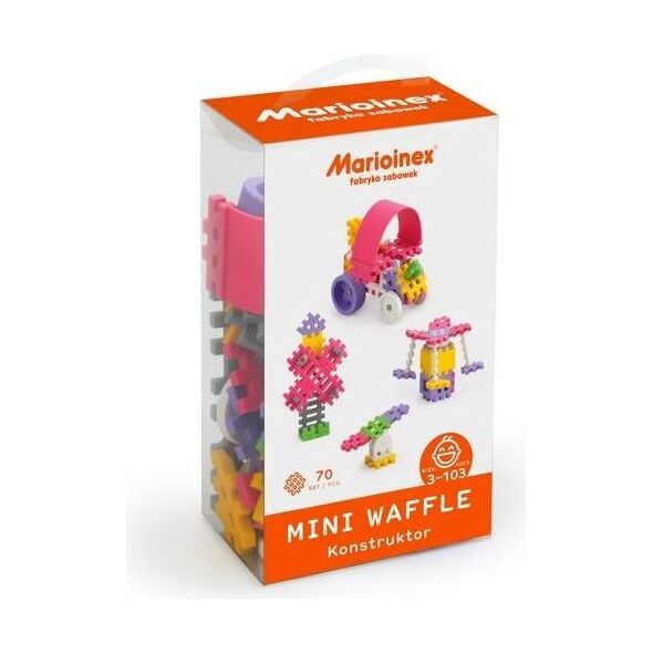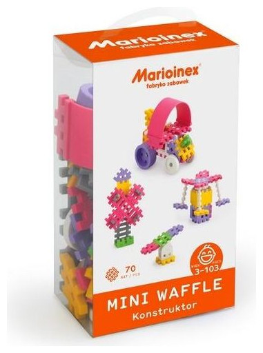 Mini Waffle Constructor 70 στοιχείων. Το σετ περιλαμβάνει νέα μπλοκ που διευρύνουν τις δυνατότητες κατασκευής. Ένα προϊόν αφιερωμένο στα κορίτσια είναι ένα καινοτόμο, μαλακό υλικό που μοιάζει με καουτσούκ με γνωστό σχήμα. Το μειωμένο μέγεθος δίνει πολύ μεγαλύτερη κινητικότητα και εντελώς νέες δυνατότητες Χάρη στη νέα τεχνολογία παραγωγής που χρησιμοποιήσαμε, τα μπλοκ μπορούν να λυγίσουν και να είναι αθόρυβα και ασφαλή για παιχνίδι. ώστε τα παιδιά μας να μην ανησυχούν για τη διευθέτηση ενός μεγαλύτερου χώρου Το προϊόν προορίζεται για παιδιά άνω των 36 μηνών Διαστάσεις συσκευασίας: 9 cm x 16 cm x 6 cm τυπικό: 3,5 cm x 3,5 cm x 0,5 cm ΠροειδοποίησηΤο παιχνίδι δεν είναι κατάλληλο για παιδιά κάτω των 36 μηνών Περιέχει μικρά κομμάτια που καταπίνονται εύκολα. Αυτό το προϊόν πληροί τα ευρωπαϊκά πρότυπα. Αφαιρέστε τα εξαρτήματα της συσκευασίας πριν δώσετε το παιχνίδι στο παιδί σας. Κρατήστε την ετικέτα καθώς περιέχει σημαντικές πληροφορίες. Τα χρώματα των στοιχείων μπορεί να διαφέρουν από αυτά που παρουσιάζονται στη συσκευασία. Συντήρηση: το παιχνίδι πρέπει να πλένεται με τρεχούμενο νερό με σαπούνι.{Ηλικία} Από 3 ετών. {Αριθμός στοιχείων} 70 . {Type} Βάφλες . {Υλικό} Πλαστικό