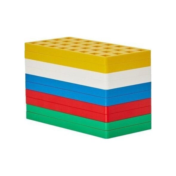 Plus-Plus Το σετ περιλαμβάνει: 6 μεγάλες βάσεις - 2 λευκές, 2 πράσινες, 2 κίτρινες, 2 μπλε, 2 κόκκινες Plus-plus είναι αυθεντικά μπλοκ που παράγονται από μια δανική εταιρεία που δίνει μεγάλη έμφαση στην οικολογική πτυχή των προϊόντων της. Τα μπλοκ δεν περιέχουν PVC ή φθαλικές ενώσεις και είναι ιδανικά για παιδιά από 1 έτους. Τα μεγάλα στοιχεία δίνουν τη δυνατότητα στα παιδιά να διασκεδάσουν δημιουργώντας διάφορους χαρακτήρες και δομές με απόλυτη ασφάλεια. Τα εξαιρετικά απλά στοιχεία επιτρέπουν δύο μορφές παιχνιδιού - το χτίσιμο «επίπεδης» και τη δημιουργία τρισδιάστατων δομών που αναπτύσσουν σημαντικά τη φαντασία του παιδιού.{Ηλικία} Από 2 ετών . {Υλικό} Πλαστικό