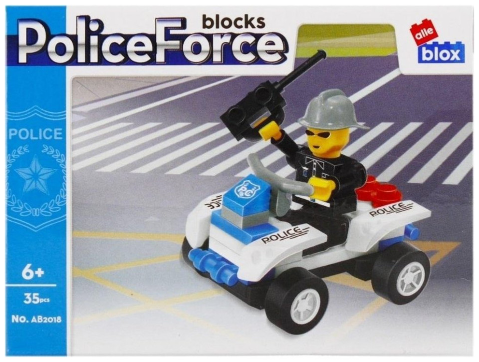 Το σετ δομικών μπλοκ ALLEBLOX είναι νέο στην προσφορά μας. Σας επιτρέπουν να κατασκευάσετε μια ποικιλία από κατασκευές, κτίρια και οχήματα, τέλεια διασκέδαση τόσο για μικρούς όσο και για μεγάλους κατασκευαστές! Συνδέονται με άλλα δημοφιλή δομικά στοιχεία, είναι ελαφριά και εύκολα στη συναρμολόγηση Περιεχόμενα σετ: 35 στοιχεία από τούβλα, οδηγίες συναρμολόγησης. Όλα τα στοιχεία είναι κατασκευασμένα από μαλακό πλαστικό Τα μπλοκ αυξάνουν τη νοητική απόδοση, η οποία μεταφράζεται σε δημιουργικότητα, διεγείρει τη φαντασία και έχει θετικό αντίκτυπο στην ανάπτυξη του παιδιού.{Για ποιον} Για αγόρι. {Ηλικία} Από 6 ετών. {Αριθμός στοιχείων} 1 . {Σειρά} Αστυνομία