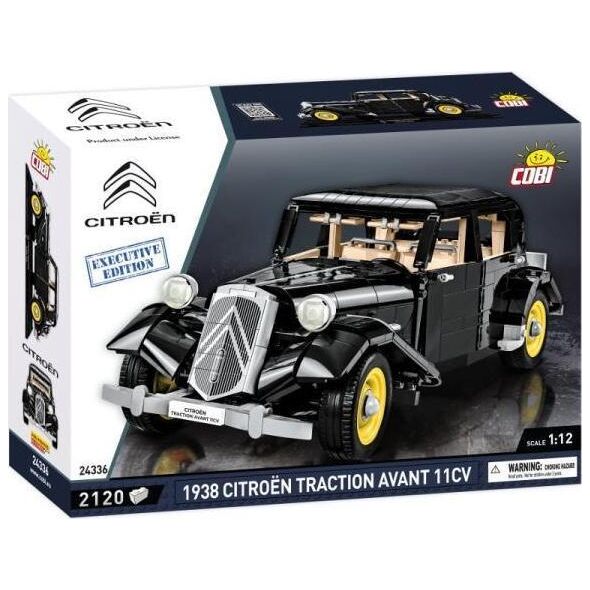 Αυτοκίνητο μπλοκ Citroen Traction AVANT 11CV από την COBI. Το σύνθετο μοντέλο φαίνεται πολύ ρεαλιστικό. Διαθέτει ανοιγόμενη πόρτα και περιστρεφόμενους τροχούς. Το σετ αποτελείται από 2.120 στοιχεία. Αυτά περιλαμβάνουν μπλοκ που μιμούνται φώτα, λαβές θυρών και πίνακα με το όνομα του μοντέλου. Το αυτοκίνητο στέκεται σε μαύρη βάση. Χάρη σε αυτό, φαίνεται υπέροχο στο ράφι. Το μήκος του φτάνει τα 37 εκατοστά. Είναι εξοπλισμένο με λειτουργικό τιμόνι, ανακλινόμενο καπό, αναπαραγόμενο κινητήρα και λεπτομερή καμπίνα.