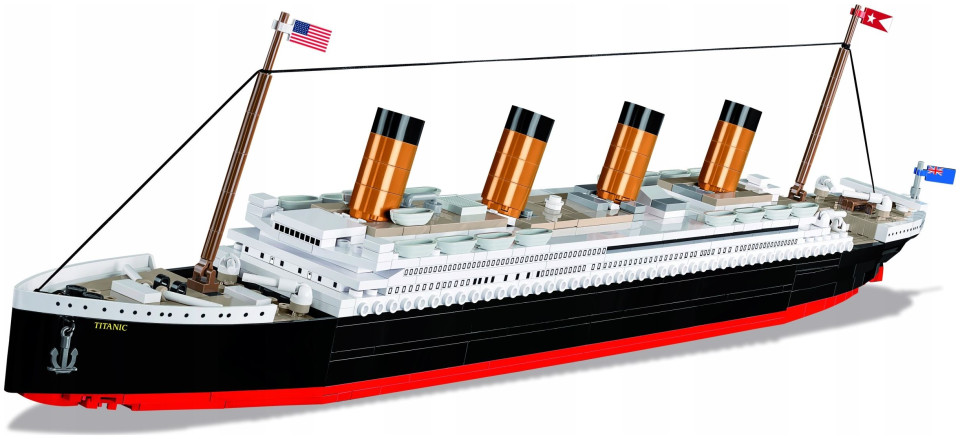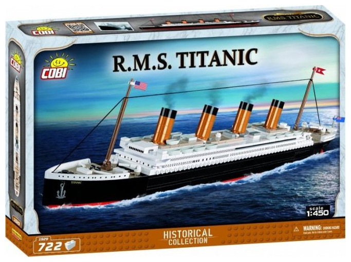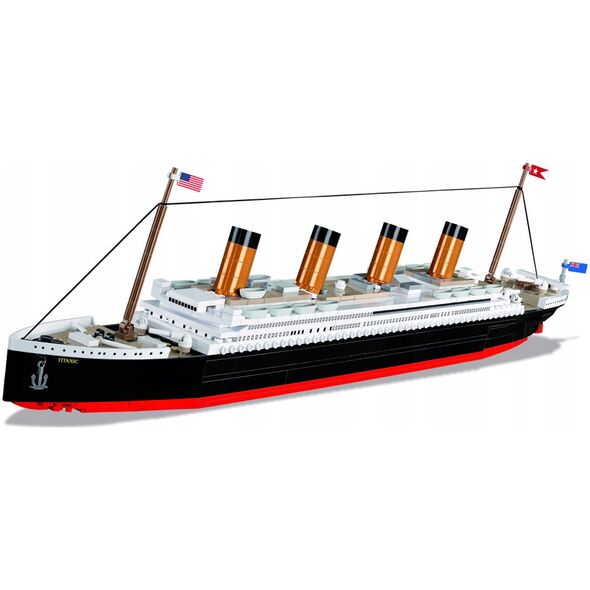 Κατά το πρώτο του παρθενικό ταξίδι, τη νύχτα της 14ης προς 15η Απριλίου 1912, στη γραμμή Σαουθάμπτον-Σερβούργο-Κουίνσταουν-Νέα Υόρκη, το βρετανικό υπερατλαντικό πλοίο R.M.S Titanic συγκρούστηκε με ένα παγόβουνο και βυθίστηκε. Αυτό το ατύχημα είναι μια από τις πιο διάσημες θαλάσσιες καταστροφές και εξακολουθεί να προκαλεί μεγάλες συγκινήσεις μέχρι σήμερα. Κατά τη διάρκεια της ατυχούς κρουαζιέρας στο πλοίο βρίσκονταν περίπου 2.228 άτομα. Είχε μήκος 268,99 μέτρα και πλάτος 29,41 μέτρα. Ήταν ένα πραγματικό τεχνολογικό θαύμα των αρχών του 20ου αιώνα. Μόλις κατασκευαστεί, έχει μήκος 64 cm και ύψος 15 cm. Πολλές λεπτομέρειες αναπαράγουν την κλίμακα 1:450 και αναπαράγουν πιστά το σχήμα και το σχήμα του θρυλικού πρωτοτύπου του. Το σετ περιέχει κινητά στοιχεία. Αυτή η έκδοση είναι εξοπλισμένη με περιστρεφόμενους τροχούς τοποθετημένους στον επίπεδο πυθμένα του πλοίου. Με τη βοήθειά τους, το πλοίο μπορεί να «επιπλέει» σε επίπεδες επιφάνειες όπως το πάτωμα, το χαλί ή το τραπέζι. Χάρη σε αυτή τη λύση, το συλλεκτικό μοντέλο γίνεται επίσης παιχνίδι. Μπορείτε επίσης να μετακινήσετε τους γερανούς, τις προπέλες και το πηδάλιο. Το εγχειρίδιο χρησιμοποιεί ένα σύστημα απλών εικονιδίων και εικονογραμμάτων που θα σας καθοδηγήσουν εύκολα στη διαδικασία κατασκευής. Το μπλοκ μοντέλο του Τιτανικού δεν απαιτεί κόλληση ή βάψιμο. Όλα τα γραφικά και οι επιγραφές τοποθετούνται στα μπλοκ με τη μορφή πολύ ανθεκτικών εκτυπώσεων που δεν τρίβονται ή ξεθωριάζουν υπό την επίδραση του ήλιου, του νερού ή ακόμη και του πολύ έντονου παιχνιδιού. Δεν χρησιμοποιήθηκαν αυτοκόλλητα στο μοντέλο. Το σετ προορίζεται για άτομα άνω των 8 ετών. Σίγουρα θα φέρει μεγάλη ικανοποίηση τόσο στους νεότερους λάτρεις των μπλοκ όσο και στους ενήλικες λάτρεις της ιστορίας και της ναυτιλίας. Το μοντέλο πλοίου R.M.S Titanic θα φαίνεται σίγουρα εντυπωσιακό τόσο στο συλλεκτικό γραφείο όσο και στο δωμάτιο κάθε εφήβου και παιδιού.